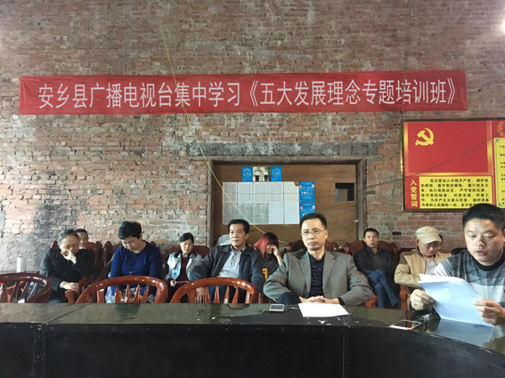 近日,为抓好市委组织部《关于认真抓好五大发展理念专题培训班学习的通知》(常组电[2016]30号)贯彻落实,县电视台按照不落一人、不少一课、不缺一分的要求,集中进行学习培训。培训期间,台党委书记马林要求,台党委班子成员要把学习贯彻党的十八届六中全会精神、牢固树立和自觉践行五大发展理念,作为当前“两学一做”学习教育活动的重要内容,各股室要以新理念筹划好来年工作,团结一心,充分发挥广播电视在建设和谐社会中的作用,为建设生态宜居大湖经济强县作出新的更大贡献。