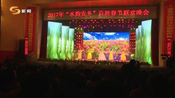 本月22号晚,2017年“水韵安乡”百姓春节联欢晚会在安乡大剧院精彩上演,20个本土原创节目在尽显“水韵安乡”主题特色的同时让广大群众提前度过了一个别具风味又“年味十足”的春节。县委书记张阳,县长王兆铭等全体在家的县委、县人大、县政府、县政协、县人武部班子成员与广大人民群众一同观看了演出。